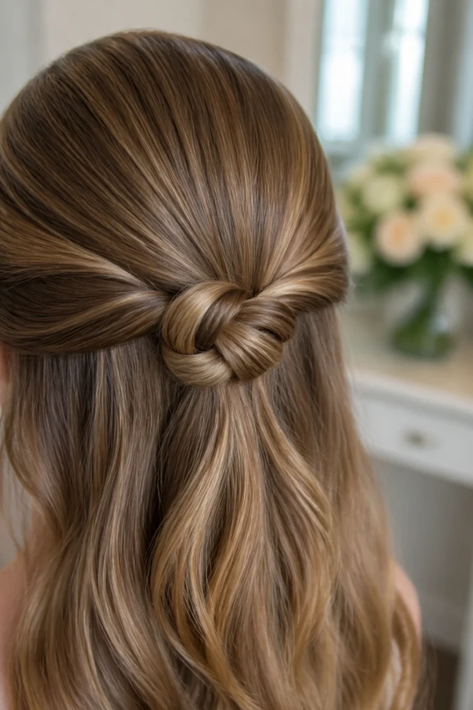 Medium hair is the sweet spot for bridal styling, and half up half down hairstyles for wedding…
